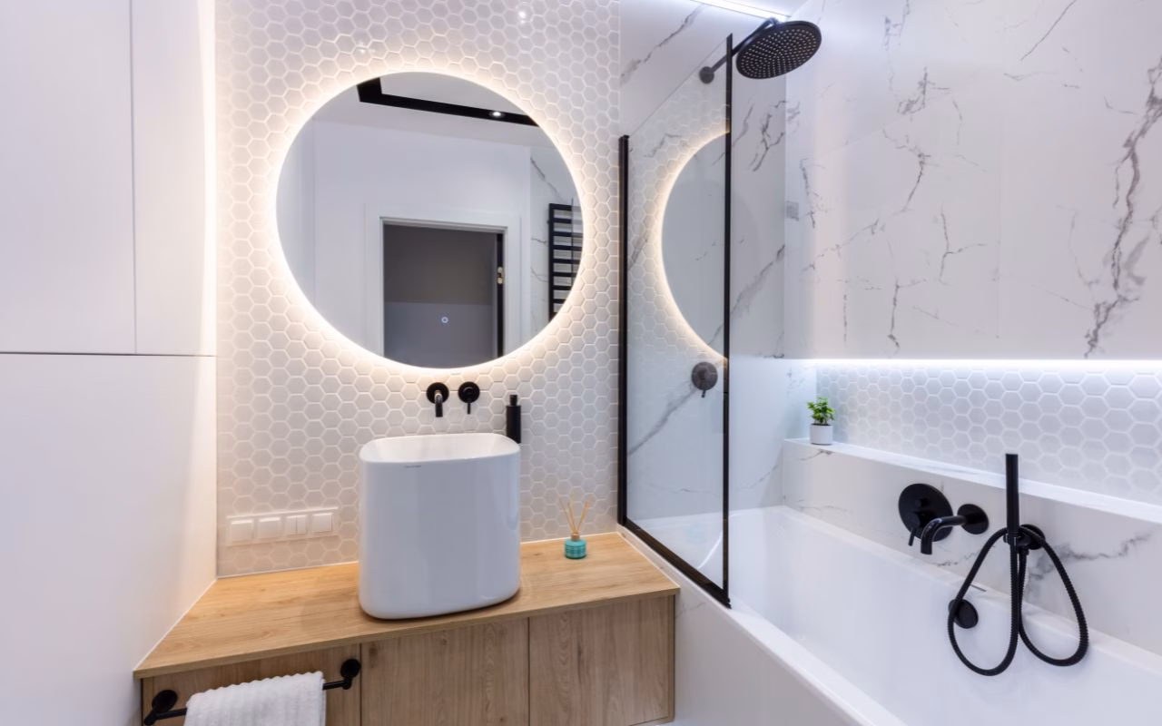 - Fitas de LED: Uma solução moderna é embutir fitas de LED nas laterais do espelho. O efeito é o mesmo, mas com um visual mais clean e integrado.