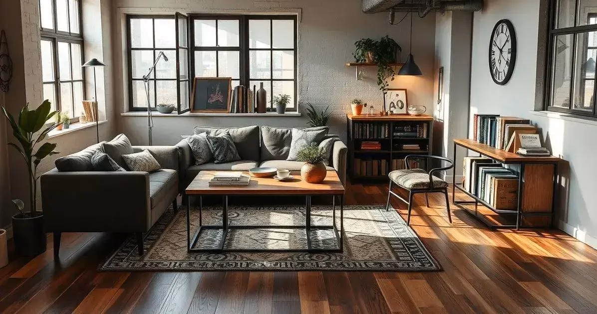 Na decoração industrial, o mobiliário deve ser funcional, com linhas retas e design minimalista. Prefira móveis de madeira, metal ou couro. As peças com história, como móveis antigos ou vintage, trazem personalidade e dão um toque especial ao ambiente. Aposte em sofás de couro, cadeiras de metal, mesas de madeira e prateleiras abertas para exibir seus objetos de decoração.