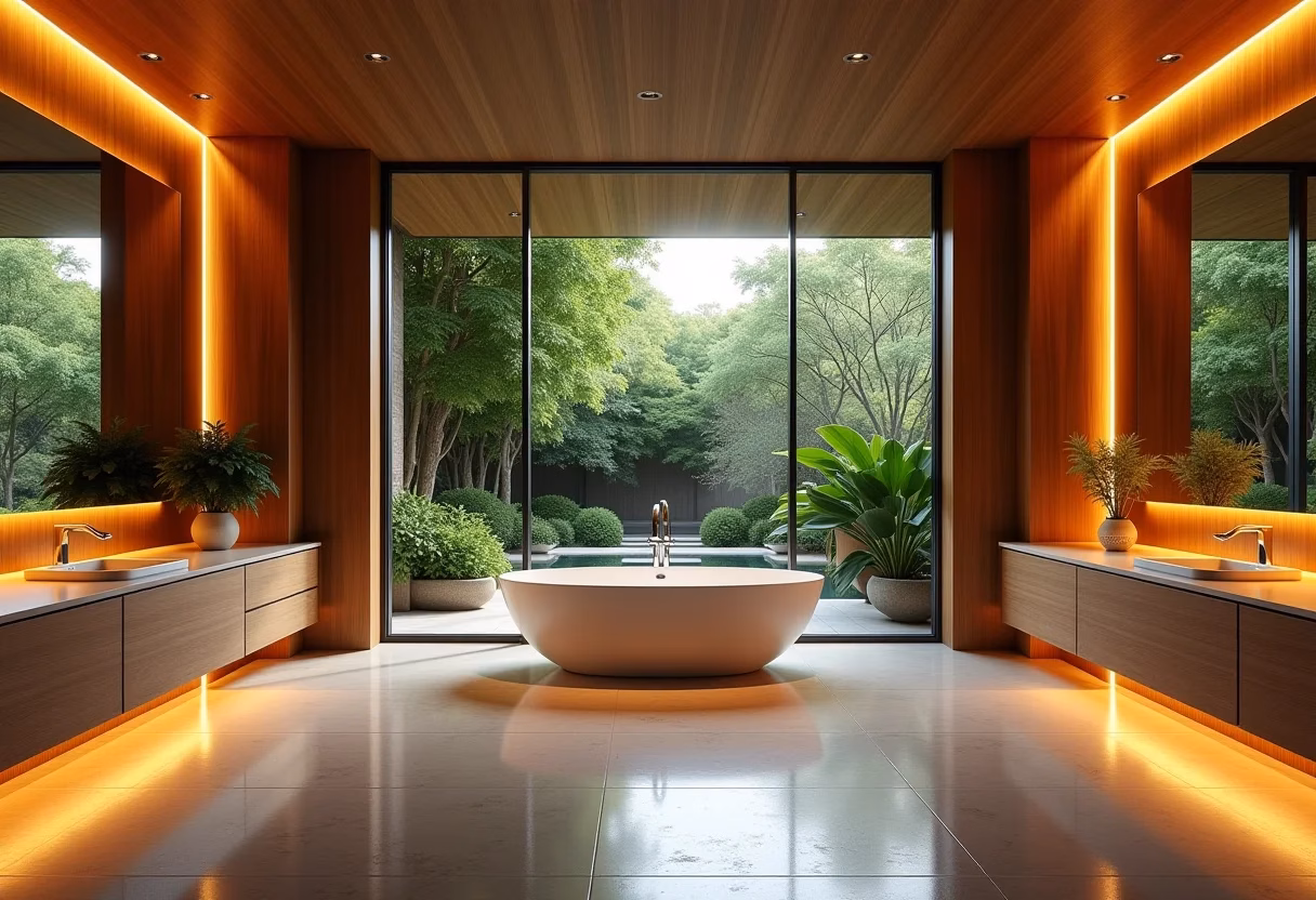 Banheiro Amadeirado com Iluminação Aconchegante: Criando a Atmosfera Ideal