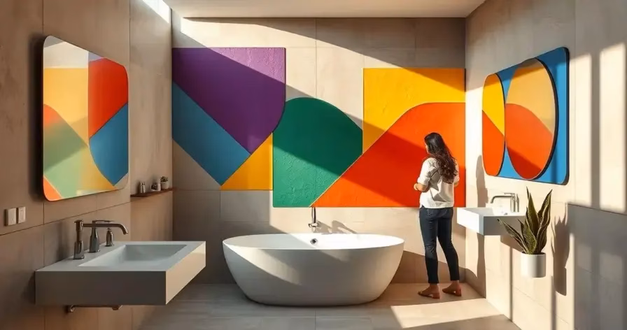 3. Geometria Abstrata: Arte nas Paredes do Seu Banheiro