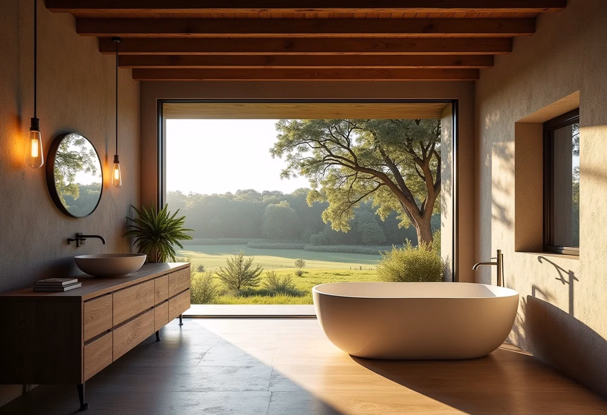 Materiais Naturais: A Alma do Banheiro de Fazenda Moderno