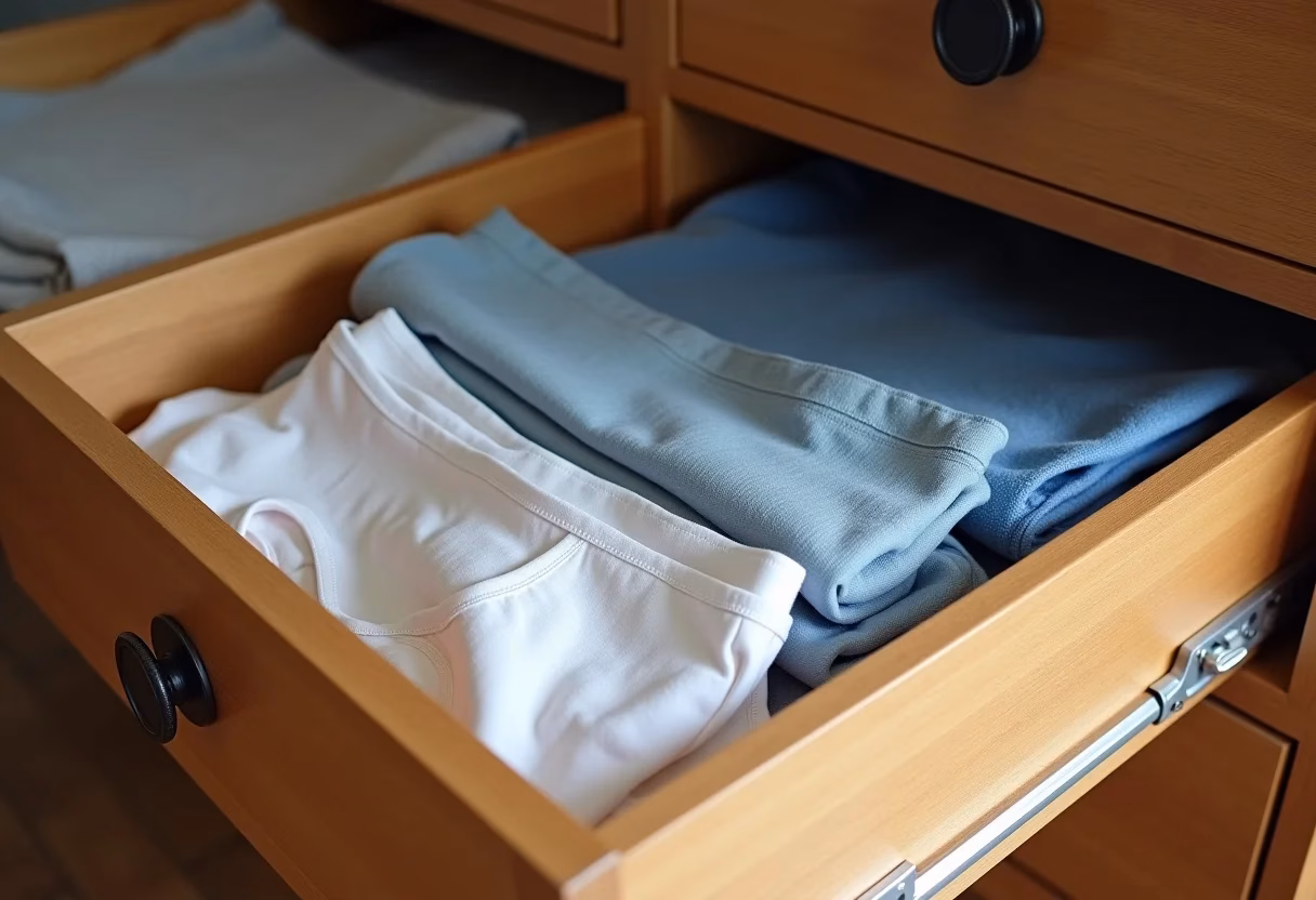 Utilize colmeias organizadoras com divisórias para separar as cuecas por tipo (slip, boxer, sunga). Isso facilita a visualização e evita que as peças se misturem.