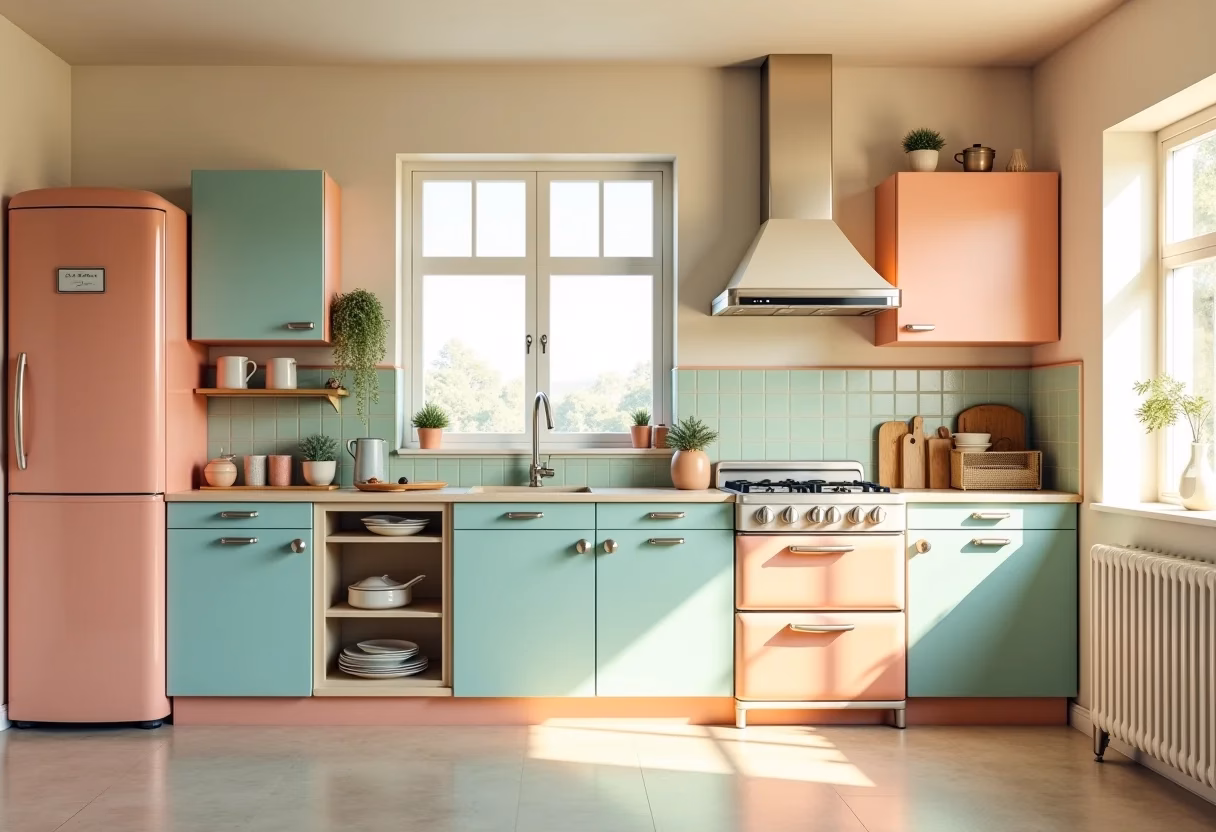 Paleta de Cores Nostálgica: O Coração da Cozinha Retrô