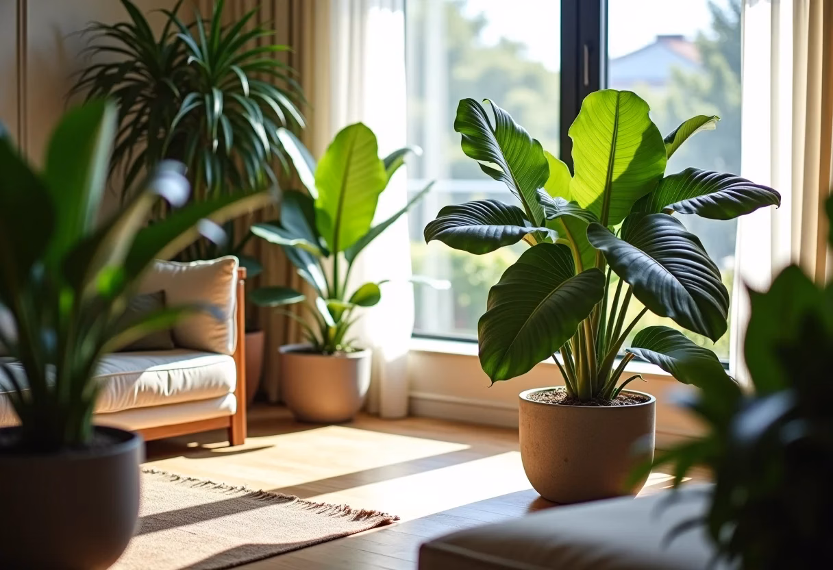 Plantas como a Espada de São Jorge, a Jiboia e o Lírio da Paz são conhecidas por sua capacidade de remover formaldeído, benzeno e outros poluentes do ar.