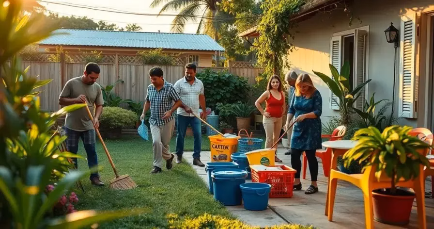 Limpar o quintal não precisa ser uma tarefa solitária! Que tal envolver todo mundo? Cada um pode ter uma pequena responsabilidade: um tira as folhas, outro rega as plantas, outro limpa os potinhos. Além de dividir o trabalho, é uma ótima forma de ensinar sobre responsabilidade e cuidado com o lar. Unir a família nas dicas para limpar o quintal transforma a tarefa em diversão.