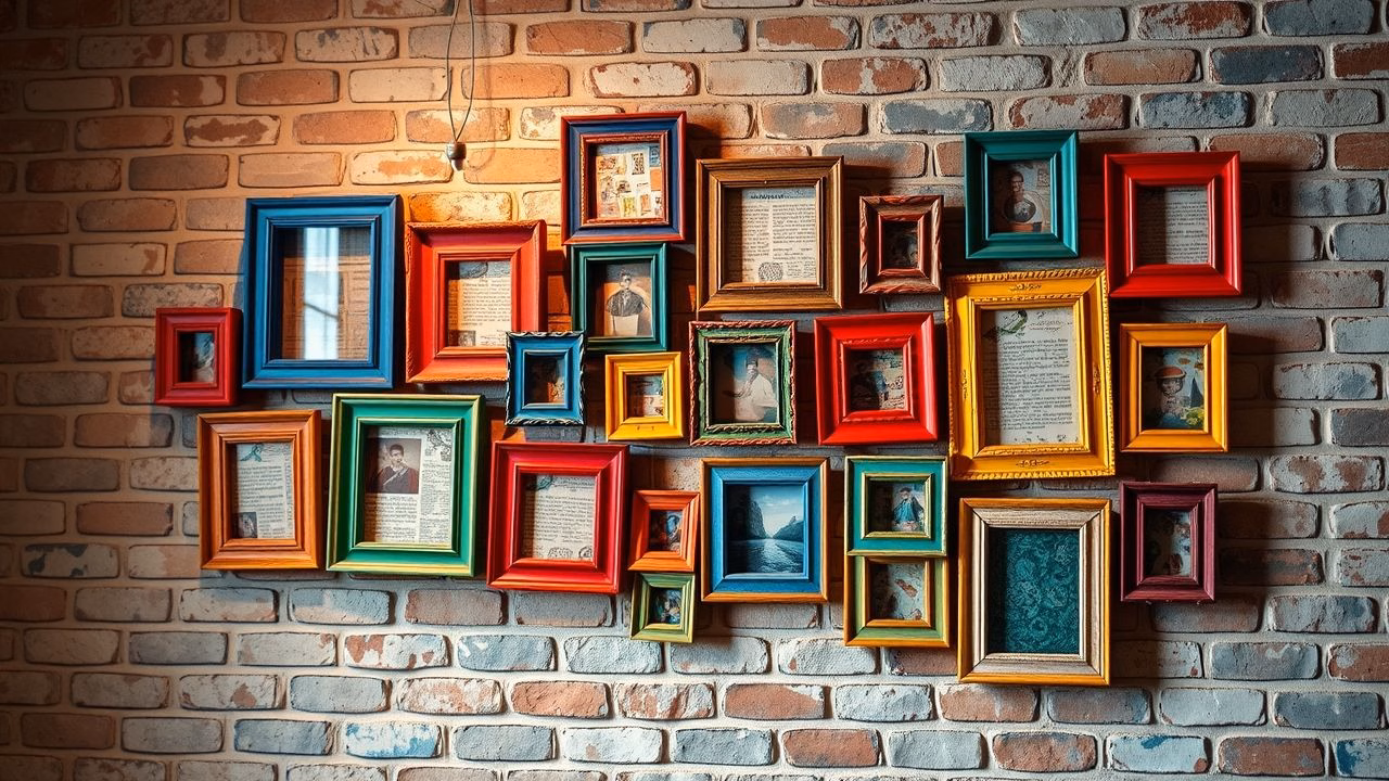 Galeria | Muitos quadros de tamanhos diferentes, preenchendo uma área. | Criativo, pessoal, um ponto focal que conta uma história. |