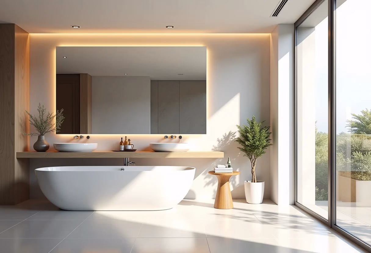 Espelhos com LED embutido oferecem um toque moderno e eficiente.