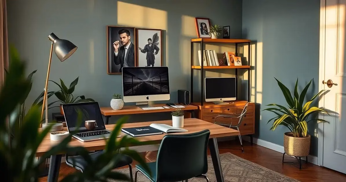 *Dica da Autora: Vai por mim, um cantinho reservado faz toda a diferença para a sua concentração. Mesmo que seja um canto no quarto, defina-o como seu espaço de trabalho e separe-o visualmente, se possível. Isso ajuda o seu cérebro a “virar a chave” para o modo trabalho.* É incrível como ter um home office planejado, mesmo que pequeno, muda a dinâmica do dia.