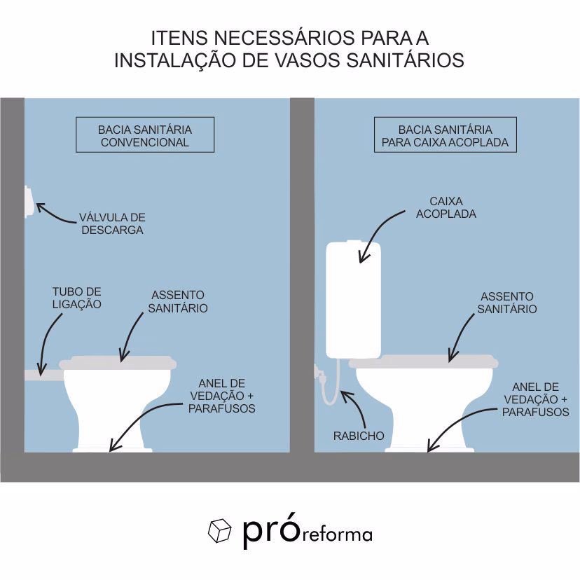 - Caixa Acoplada (se for o caso): Algumas já vêm com o vaso, outras não.
