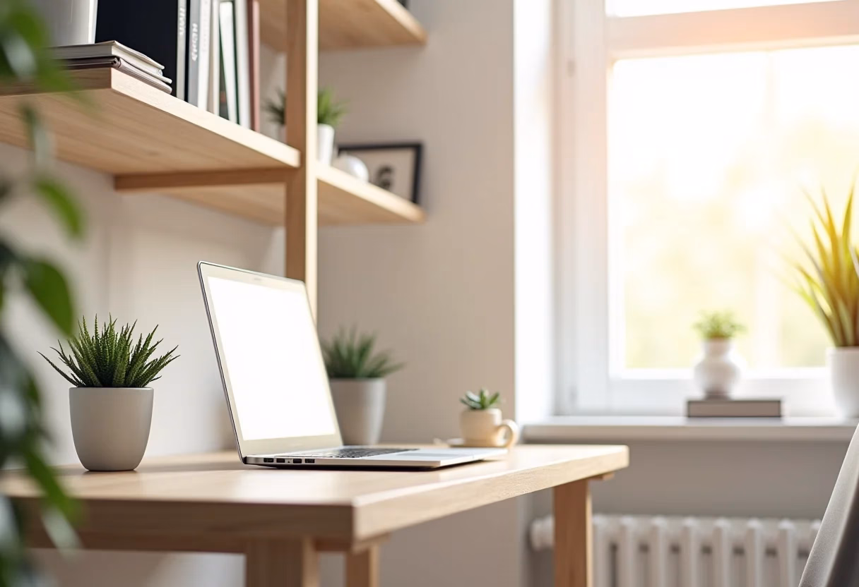 As plantas trazem vida e alegria ao ambiente de trabalho. Além disso, elas purificam o ar e ajudam a reduzir o estresse. Escolha plantas fáceis de cuidar, como a zamioculca, a espada-de-são-jorge e o cacto.