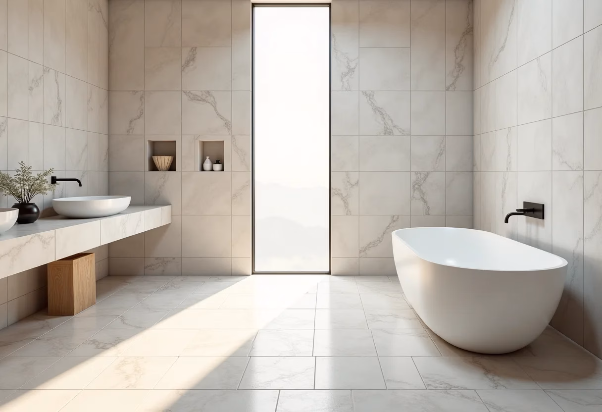- Revestimentos especiais: Porcelanatos, pastilhas e pedras naturais ganham destaque com o rejunte epóxi.